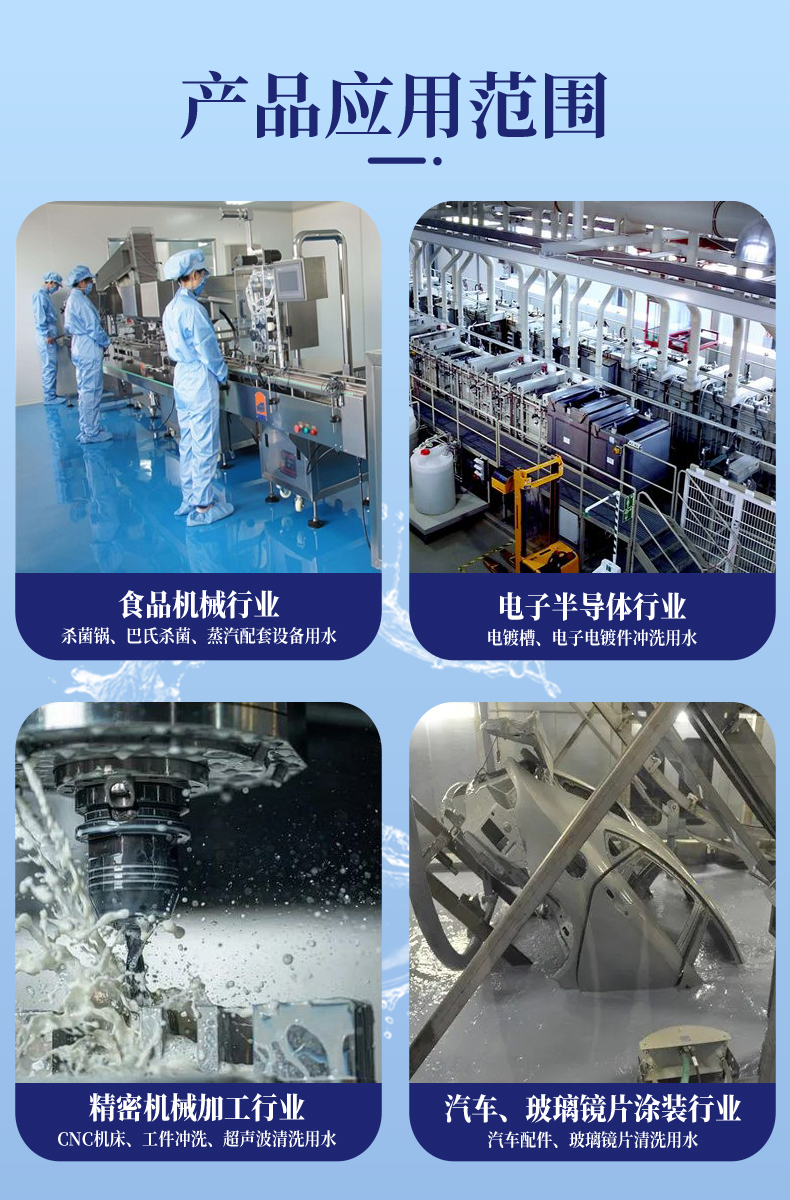 裝、汽車、電子、食品、鍋爐補(bǔ)水等行業(yè),贏得了用戶的一致好評。