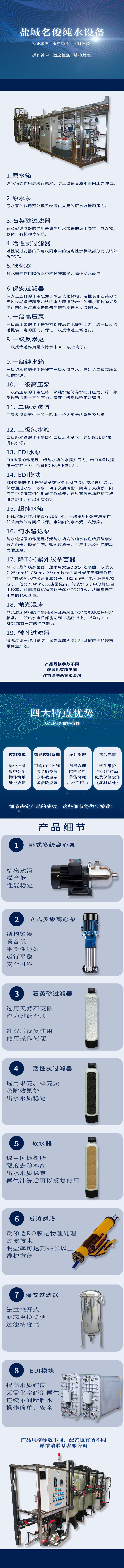 鹽城名俊環(huán)??萍加邢薰局饕a(chǎn)水處理過濾器、軟水器、工業(yè)去離子水、玻璃水純水機(jī)、防凍液純水機(jī)、車用尿素純水機(jī)、超濾(UF)裝置、反滲透(RO)裝置、自動加藥裝置、離子交換柱(陰陽床、混床)、超純水去離子(EDI)等系統(tǒng)設(shè)備。應(yīng)用于電子工業(yè)超純水制備、衛(wèi)生行業(yè)用水制
